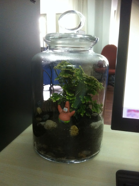 Sonra sabahın köründe üşenmedim kavanozumu paketledim işe getirdim, koydum bilgisayarımın yanına oh ne güzel yeşillik manzarası oldu. Sulamam biraz çok geldiğinden nemlenmişti kavanozun içi, ben de kapağını açarak nemin çıkmasını sağladım ve tekrar kapattım.